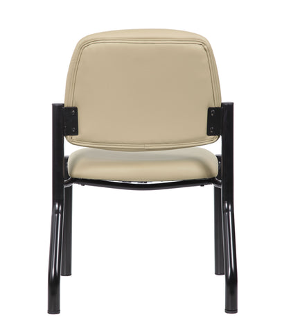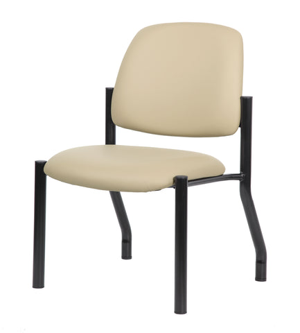 Boss Antimicrobial Armless Guest Chair, 300 lb. weight capacity MODEL # B9595AM-BG / This heavy duty and comfortable mid back guest chair is perfect for anyone seeking additional seating in any room or office. The guest chair is designed with a strong and easy to clean antimicrobial beige vinyl material that lends a professional appearance along with a sturdy four leg tubular black steel base that offers coziness and strength. The chair stands at a fixed height with an streamlined armless design and boast a weight capacity of 300 lbs. / 751118959536