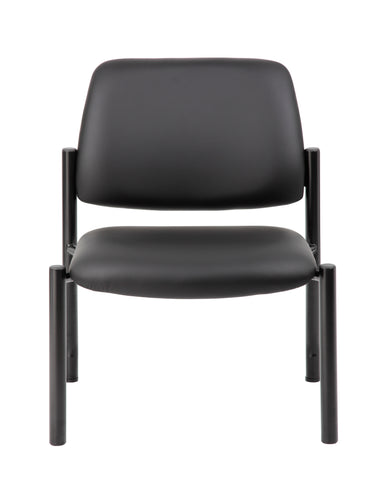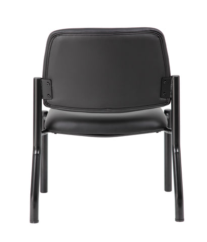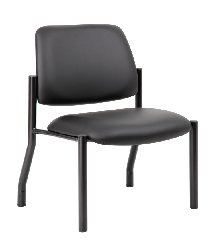 Boss Antimicrobial Armless Guest Chair, 400 lb. weight capacity MODEL # B9595AM-BK-400 / This heavy duty and comfortable mid back guest chair is perfect for anyone seeking additional seating in any room or office. The guest chair is designed with a strong and easy to clean antimicrobial black vinyl material that lends a professional appearance along with a sturdy four leg tubular black steel base that offers coziness and strength. The chair stands at a fixed height with an streamlined armless design and boast a weight capacity of 400 lbs. / 751118959505