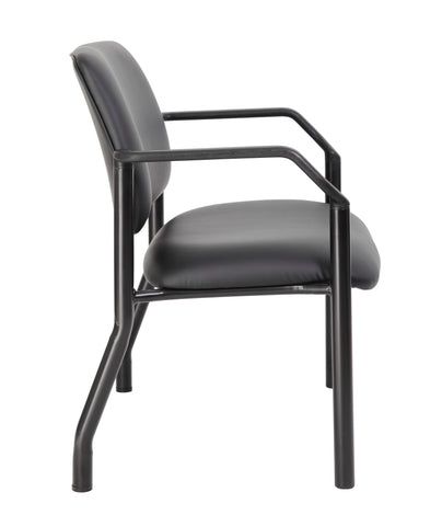 Boss Antimicrobial Guest Chair, 500 lb. weight capacity MODEL # B9591AM-BK-500 / This heavy duty and comfortable mid back guest chair is perfect for anyone seeking additional seating in any room or office. The guest chair is designed with a strong and easy to clean antimicrobial black vinyl material that lends a professional appearance along with a sturdy four leg tubular black steel base that offers coziness and strength. The chair stands at a fixed height with a fixed arm design and boast a weight capacity of 500 lbs. / 751118959109