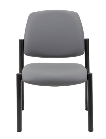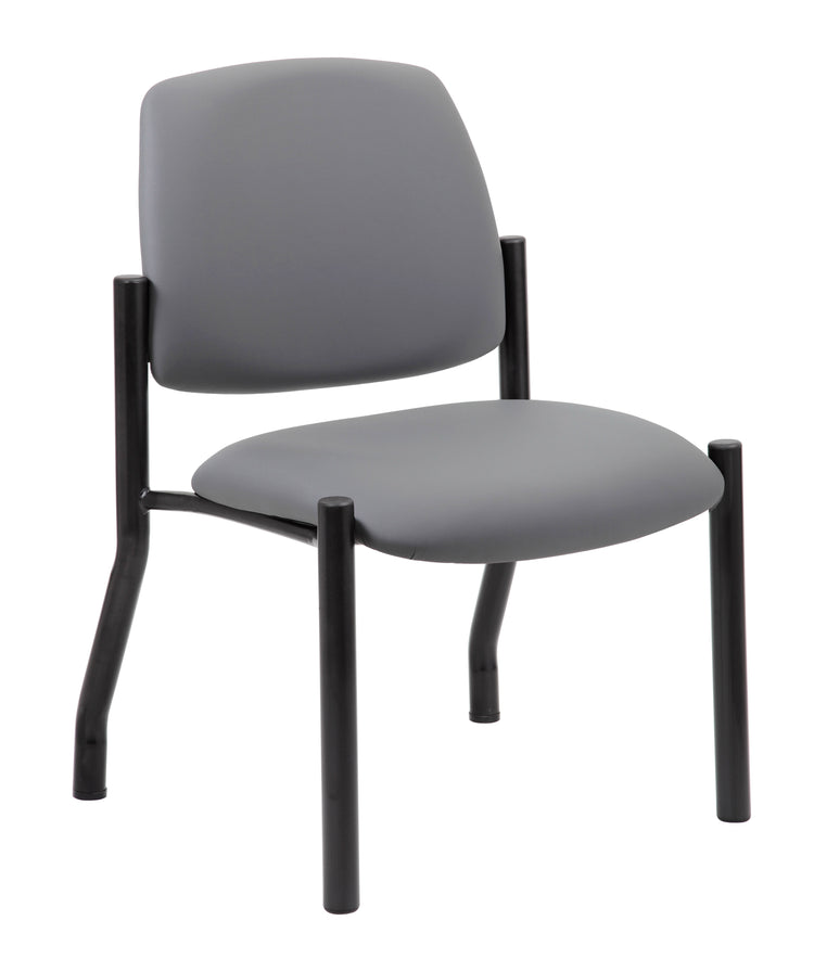 Boss Armless Guest Chair, 300 lb. weight capacity MODEL # B9595AM-GY / This heavy duty and comfortable mid back guest chair is perfect for anyone seeking additional seating in any room or office. The guest chair is designed with a strong and easy to clean grey antimicrobial vinyl material that lends a professional appearance along with a sturdy four leg tubular silver steel base that offers coziness and strength. The chair stands at a fixed height with an streamlined armless design and boast a weight capacity of 300 lbs. / 751118959529