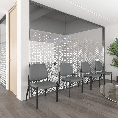 * Upholstered in antimicrobial vinyl* Back and seat separation for easy cleaning* Silver steel frame * Wall saver leg design