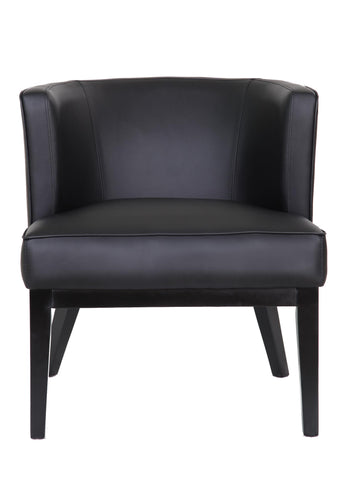 * Fashionable accent, guest or reception chair* Upholstered in Black Caressoft Vinyl* Extra-large padded seat for extra comfort * Black finished wood legs