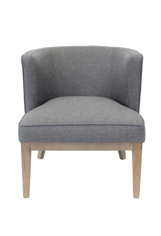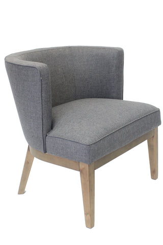 * Fashionable accent, guest or reception chair* Upholstered in Slate Grey commercial grade linen fabric* Extra-large padded seat for extra comfort* Driftwood finish legs