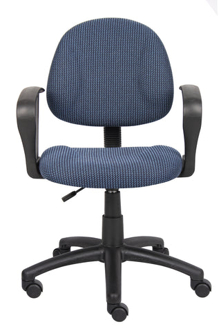 Boss Blue Deluxe Posture Chair W/ Loop Arms MODEL # B317-BE / This Blue Fabric Deluxe Posture Chair comes with a thick padded seat and back with built in lumbar support. It has an adjustable back depth that can be easily customized for your personal needs. The pneumatic adjustable gas lift allows for easy seat height adjustment, to help you find the personalized sitting style that suits you and your work environment. The five star nylon base allows for smooth movement and stability. The hooded double wheel casters make it easy to move and shift directions. The Loop Arms make for comfortable and natural arm rests. / 751118031737
