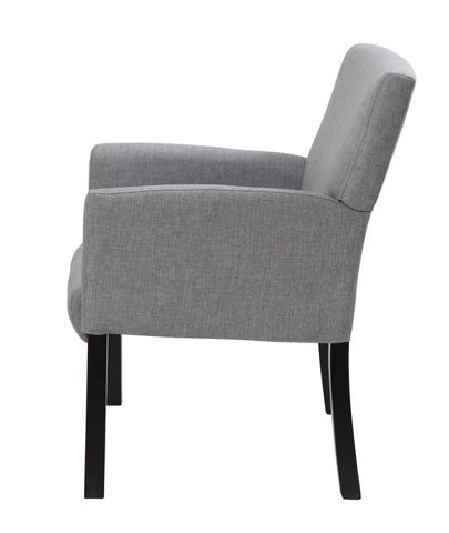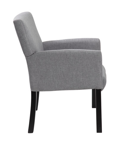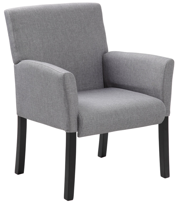 Boss Box Arm guest, accent or dining chair W/Black Base MODEL # B659-MG / This Executive Box Arm Chair is beautifully upholstered in a Medium Grey commercial grade linen. The softness of the seat is bolstered by the ergonomic built-in lumbar support that it provides. It features spacious box arm styling, and sits on Black wood legs that are both sturdy and stylish. The angular chair features an elegant, contemporary design that can provide your office or reception area with an upscale look. This is the chair for outfitting your office desk or a waiting room with comfort and class. / 751118065923
