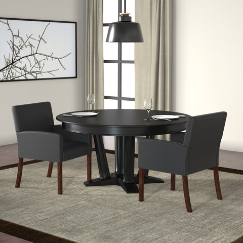 Boss Box Arm guest, accent or dining chair W/Mahogany Finish MODEL # B629M / The reception box arm chair in black adds a pop of class and a great additional seating option for pretty much any room or office. The chair itself is made with CaressoftPlus material which is a vinyl upholstery that looks & feels like leather, but is far more durable and can be cleaned easily with a damp cloth. The base of the chair is a gorgeous 4 legged mahogany design and the chair is set at a fixed height, with fixed arms and has a weight limit of 275 lbs. / 751118062984