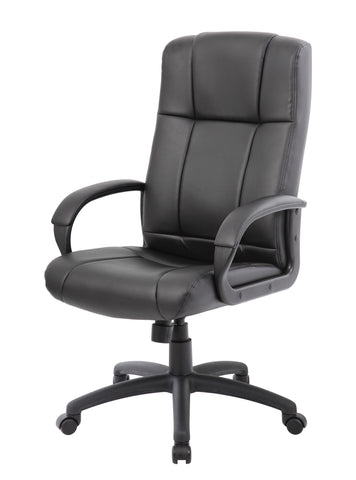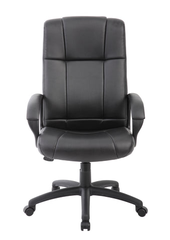 Boss CaressoftPlus Executive High Back Chair MODEL # B7901 / This executive high back chair is elegantly upholstered with extremely soft and durable CaressoftPlus vinyl. It features integrated lumbar support and padded armrests decorated in comfortable CaressoftPlus upholstery. Additional features include an upright locking position, adjustable tilt tension control, and pneumatic gas lift seat height adjustment for a seat height that extends from 20” to 23.5”. All of this sits atop a sturdy 27” nylon base with five hooded double wheel casters for exemplary stability and maximum mobility. / 751118790115