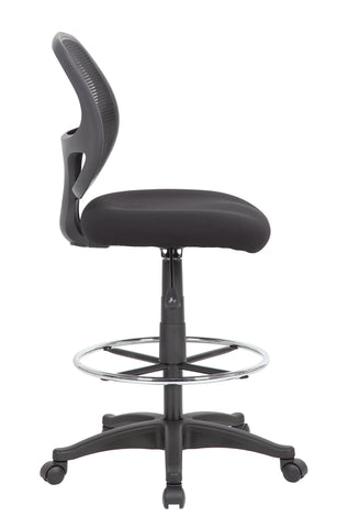 Boss Commercial Grade Mesh Stool MODEL # B16605 / This commercial grade mesh back stool has an attractive linear mesh material back which helps to prevent heat buildup. The back design is constructed to allow for generous lumbar support. This chair features a thick high density foam seat that is upholstered with premium mesh material for contract styling and quality. It includes a pneumatic gas lift seat height adjustment, a 25-inch black nylon base and hooded double wheel casters and a chrome footring. It is tested to a weight capacity of 275 lbs. The workhorse if perfect for home, school, or the office. / 751118166057