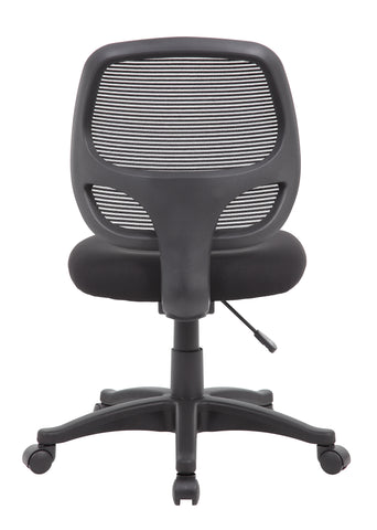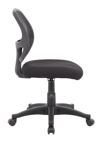Boss Commercial Grade Mesh Task Chair MODEL # B605 / This commercial grade mesh back task chair has an attractive linear mesh material back which helps to prevent heat buildup. The back design is constructed to allow for generous lumbar support. This chair features a thick high density foam seat that is upholstered with premium mesh material for contract styling and quality. It includes a pneumatic gas lift seat height adjustment, a 25-inch black nylon base and hooded double wheel casters. It is tested to a weight capacity of 275 lbs. The workhorse if perfect for home, school, or the office. / 751118064513