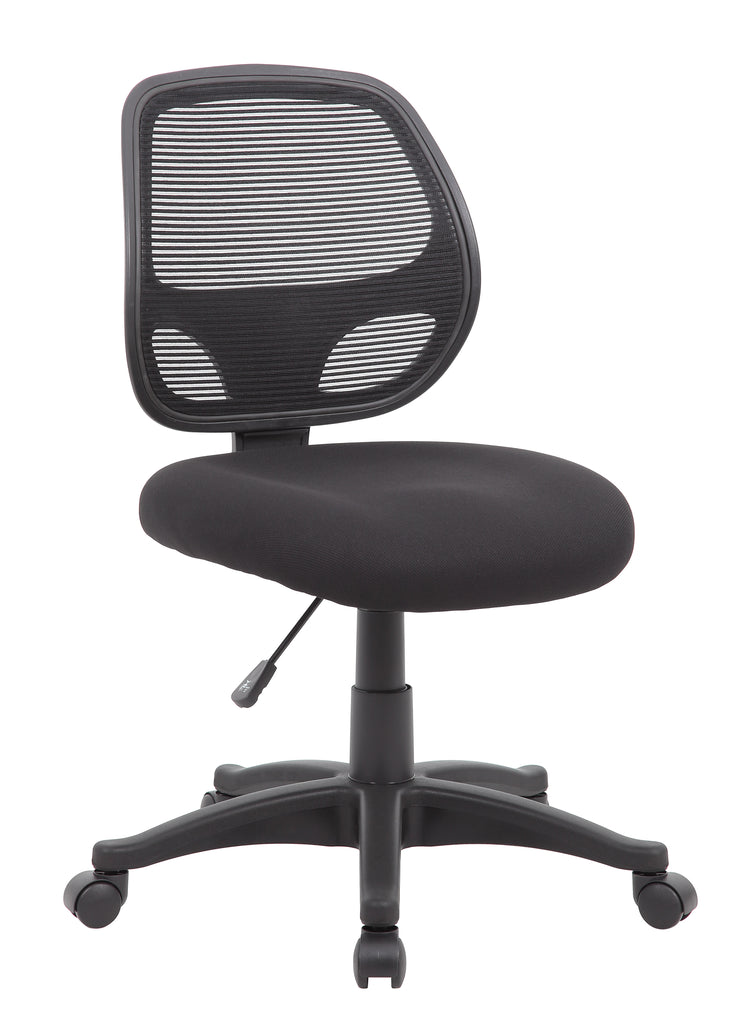 * Breathable mesh back* Fabric upholstered seat* Pneumatic seat height adjustment* Lumbar support