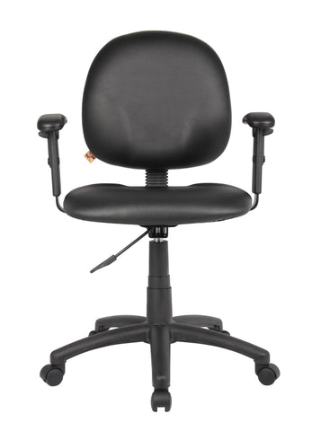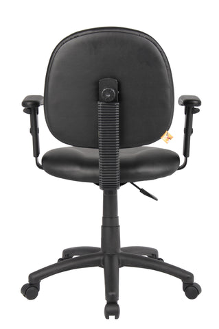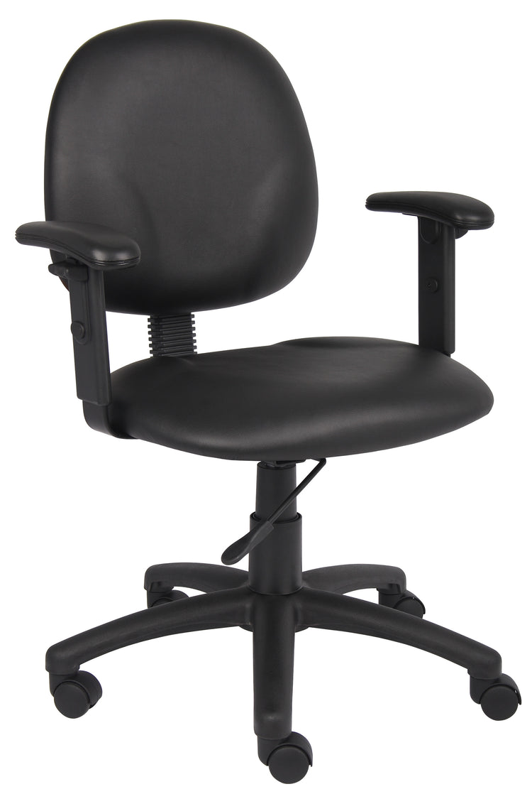 Boss Diamond Task Chair In Black Antimicrobial Vinyl W/ Adjustable Arms MODEL # B9091-CS / This mid back ergonomic task chair is the perfect way to increase productivity and remain comfortable while doing so. Its contoured back seat promotes proper posture that prevents back strain, while its extra large seat and back cushions ensure maximum comfort. Additional features include adjustable arms, pneumatic gas lift seat height adjustment, black Antimicrobial vinyl upholstery, and adjustable back height and depth. It is available in four colors, so there are plenty of options for matching your existing color scheme. / 751118909180