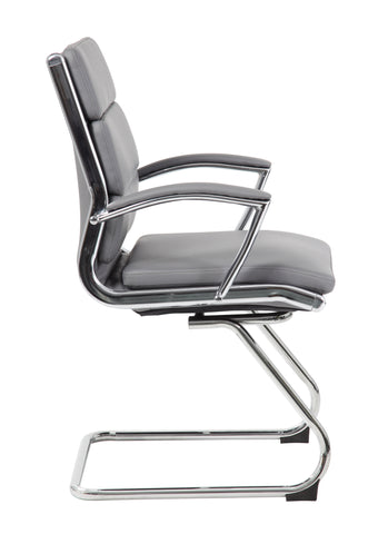 Boss Executive CaressoftPlus Chair with Metal Chrome Finish - Guest Chair MODEL # B9479-GY / The CaressoftPlus executive guest chair in grey with the metal chrome finish is as comfortable as it is handsome. This is the perfect guest chair for most any room or office and adds a pop of modernism to any room. The chair is made with a material called CaressoftPlus which is a trademarked vinyl that is an ultra-soft upholstery that looks & feels like leather, but more durable & easy to clean. It has been designed with a sturdy chrome cantilever base and has a weight capacity of 275 lbs. / 751118947922