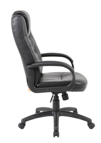 Boss Executive High Back LeatherPlus Chair MODEL # B7501 / Our high back executive LeatherPlus chair is the perfect compliment to any office. Upholstered with beautiful black LeatherPlus, a combination of leather and polyurethane that promotes exquisite softness and durability, this chair is more than capable of taking comfortable seating to a new level. Additional features include passive ergonomic seating with integrated lumbar support, padded armrests covered in the same elegant upholstery, an upright locking position, pneumatic gas lift seat height adjustment, spring-tilt mechanism, and adjustable tilt tension control. / 751118750119