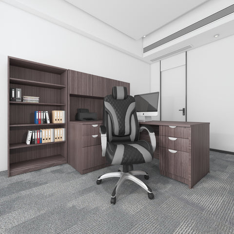 Boss Executive Hinged Arm Chair - Black/Grey MODEL # B8871-BKGY / This hinged arm executive chair is beautifully upholstered in black and grey Caressoft upholstery for the kind of comfort and durability required for a long day at the office. It features a designer stitched back cushion and pivoting hinge arms that allow the seat and back to move independently in tandem with the 2-to-1 synchro tilt mechanism and adjustable tilt tension control. The chair’s seat tilt allows it to be locked in any position within the tilt range for a truly personalized seating experience. / 751118887136