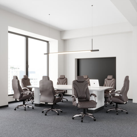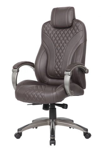 Boss Executive Hinged Arm Chair - Brown MODEL # B8871P-BB / This hinged arm executive chair is beautifully upholstered in Brown LeatherPlus upholstery for the kind of comfort and durability required for a long day at the office. It features a designer stitched back cushion and pivoting hinge arms that allow the seat and back to move independently in tandem with the 2-to-1 synchro tilt mechanism and adjustable tilt tension control. The chair’s seat tilt allows it to be locked in any position within the tilt range for a truly personalized seating experience. / 751118887129