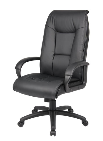 Boss Executive Leather Plus Chair W/Padded Arm MODEL # B7601 / This executive chair with padded fixed arms is made with an upholstery material called LeatherPlus, which is a leather infused with polyurethane and boast a sturdy 27 inch nylon base with 2 inch nylon dual wheel castors. The chair also offers a spring tilt mechanism which allows one to change the angle of the entire seat relative to the floor and allows one to transfer some of the upper body weight to the backrest of the chair. In addition to the spring tilt mechanism the chair also offers tilt tension, a pneumatic gas lift for an easily adjustable height and an upright lock. / 751118760118