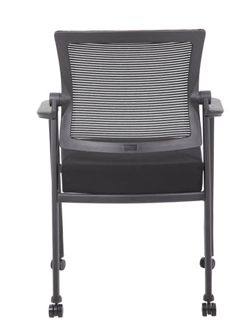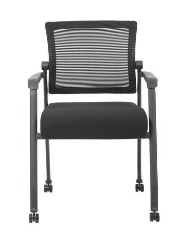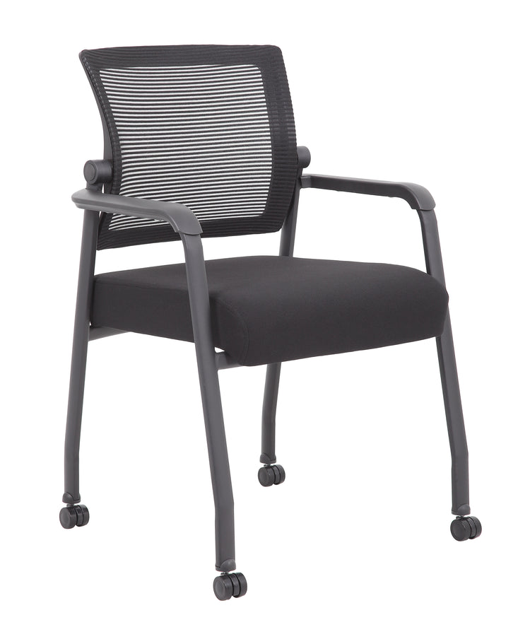 Boss Mesh 4-Legged Guest Chair MODEL # B6889R-BK / The mesh guest chair with casters, in black, is the perfect addition to any room or office. The chair is at a fixed height with fixed arms and is designed with an upholstered seat and a breathable, airy mesh back. It has a steel tubular frame with double wheel casters that allow smooth movement across many flooring surfaces. The black chair adds a modern, professional appearance to any space and has a weight limit of 275 lbs. / 751118688924