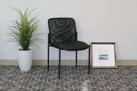 Boss Mesh Guest Chair MODEL # B6919 / The mesh guest chair in black is the perfect addition to any room or office. For smaller spaces, the chair can be stacked 4 high and stored away when not in use. The chair is at a fixed height with fixed arms and is designed with a mesh seat as well as a breathable, airy mesh back. The black chair adds a modern, professional appearance to any space and has a weight limit of 275 lbs. / 751118691917