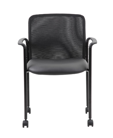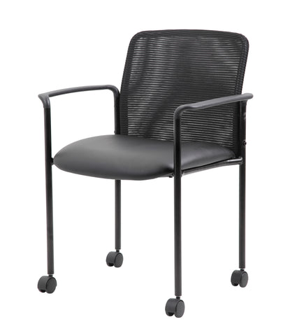 Boss Mesh Guest Chair with Casters, Black MODEL # B6909R-CS / The stackable mesh guest chair in black is the perfect addition to any room or office. For smaller spaces, the chair can be stacked 4 high and stored away when not in use. The chair is at a fixed height with fixed arms and 4 hooded dual wheel casters and is designed with a mesh seat as well as a breathable, airy mesh back. The black chair adds a modern, professional appearance to any space and has a weight limit of 275 lbs. / 751118690958