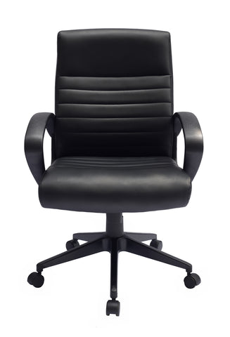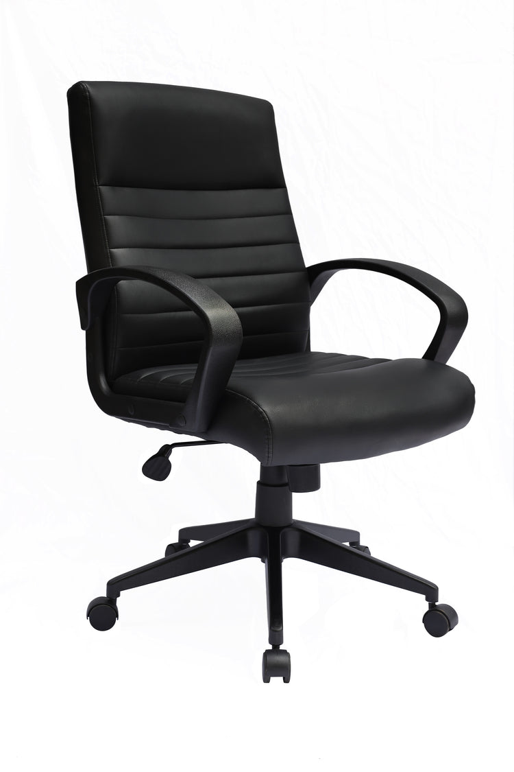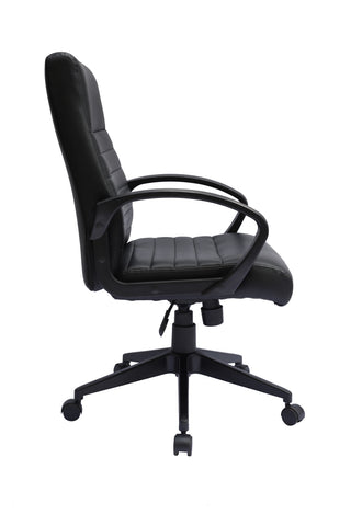 Boss Ribbed Back Task Chair MODEL # B426-BK / The Ribbed Back Task Chair with polypropylene fixed arms offers exceptional features such as tilt tension, a pneumatic gas lift for easy height adjustments and an upright lock. The chair is upholstered in black vinyl, called CaressoftPlus which is ultra-soft upholstery that looks & feels like leather, but more durable & easy to clean. It also boasts a sturdy high crown 25 inch nylon base with 2 inch nylon dual wheel castors for a smooth roll and has a weight limit of 275 lbs. / 751118043006