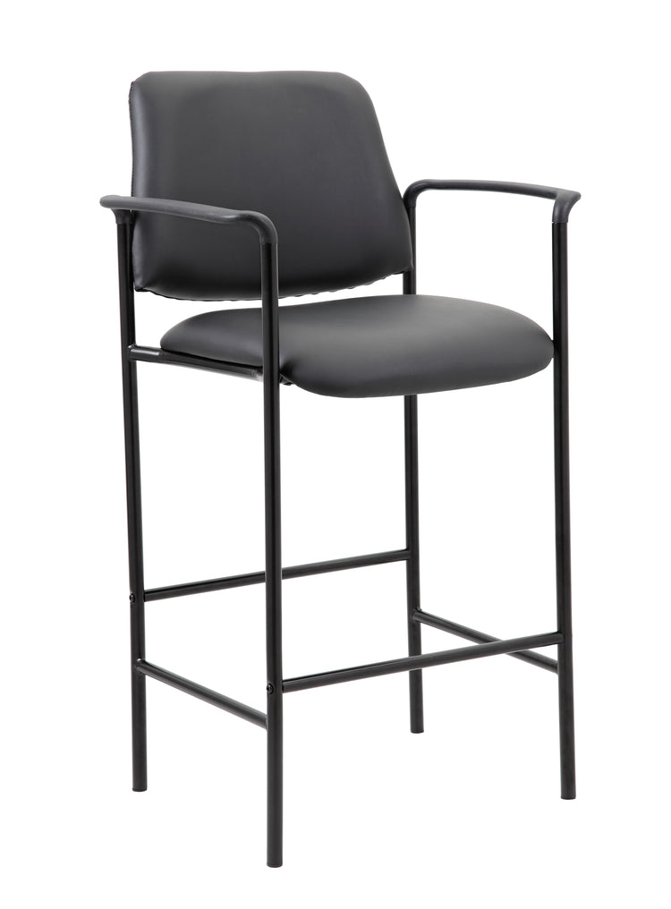 Boss Square Back Diamond Stool W/Arm In Black Caressoft MODEL # B169503-CS / The slender and sleek Boss Square Back Stool in black is a versatile seat that can be utilized from a drafting stool to guest seating. It is made from antimicrobial vinyl material, an upholstery that looks & feels a lot like leather, but is far more durable and can be easily cleaned with a damp cloth. The stool has fixed arms and a 4 leg tubular base made from sturdy black steel which offers a 275 lbs. capacity. / 751118950359