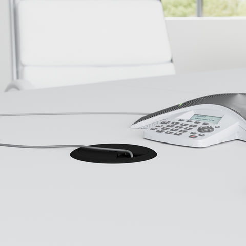 Perfect for teams of 8 to 10 users, this large boardroom table provides an ideal space to present new ideas and collaborate on the day's most pressing matters. Its 1-inch thick surface supports up to 200 pounds and includes two built-in wire management grommets so team members can power through meetings with laptops, a projector, and any other essential materials or equipment.