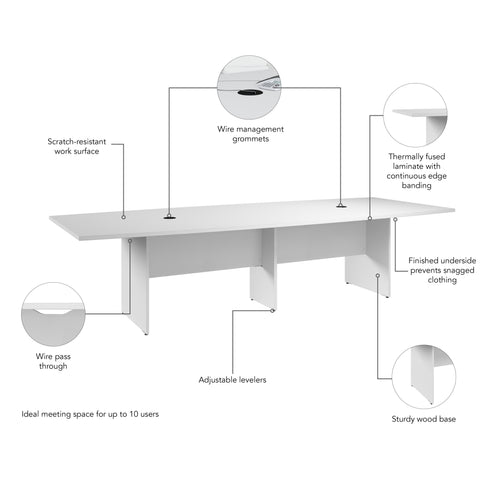 Bush Business Furniture 99TB12048WHK 120-inch Office Conference Table with Wood Base in White