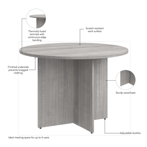 Bush Business Furniture 99TB42RPG 42-inch Round Conference Table with Wood Base in Platinum Gray