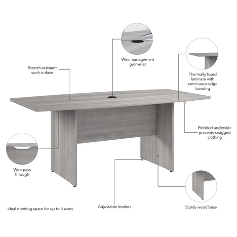Bush Business Furniture 99TB7236PG 72-inch Office Conference Table with Wood Base in Platinum Gray