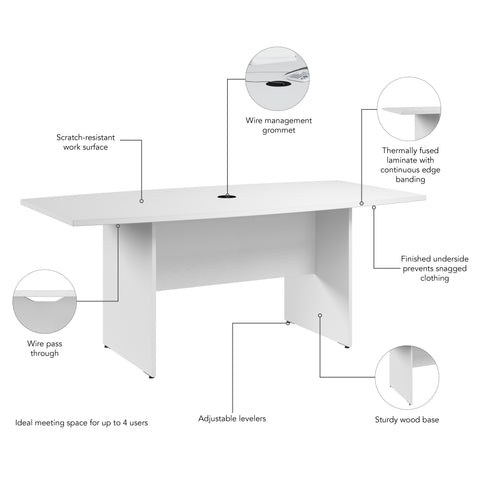 Bush Business Furniture 99TB7236WH 72-inch Office Conference Table with Wood Base in White