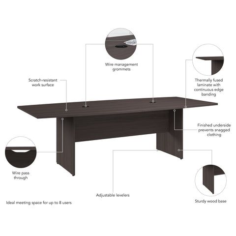 The Bush Business Furniture 96-inch Office Conference Table presents a practical space for team members to collaborate in any professional setting. Perfect for teams of 6 to 8 users, this large meeting table provides a common area to work together on projects and assignments, present new ideas, or discuss the direction of your company.