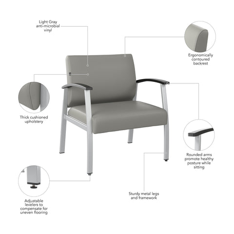 Bush Business Furniture CH3902GVL-03 Arrive Bariatric Waiting Room Guest Chair with Arms in Light Gray Vinyl