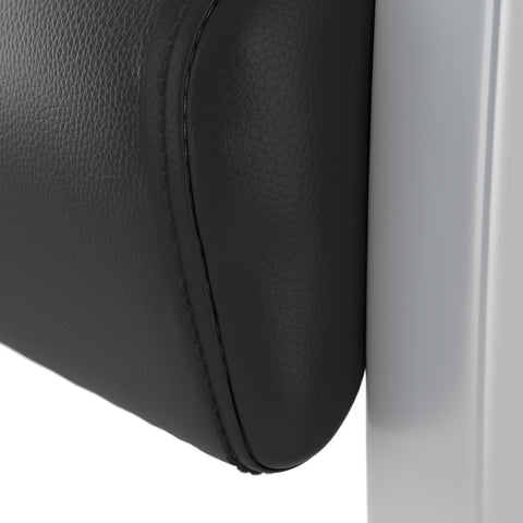 The padded seat features antimicrobial vinyl upholstery that inhibits the spread of bacteria, is quick and easy to clean, and resists cuts and tears while conveying a modern professional appearance.