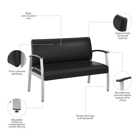 Bush Business Furniture CH3903BVL-03 Arrive Waiting Room Loveseat with Arms in Black Vinyl