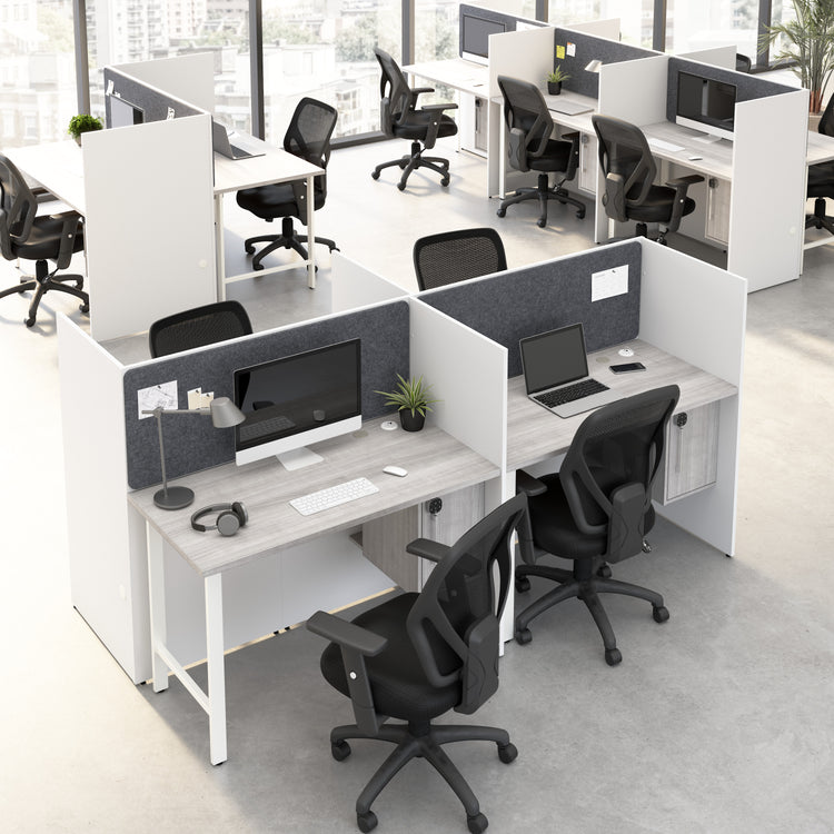 The Bush Business Furniture Hustle 60-inch 2 Person Office Cubicles with Locking Storage and Large Tackboards instantly turn any space into a private and productive work area. Dual workstations with robust 1-inch-thick desktops accommodate multiple monitors and other equipment with 200-pound weight capacities.