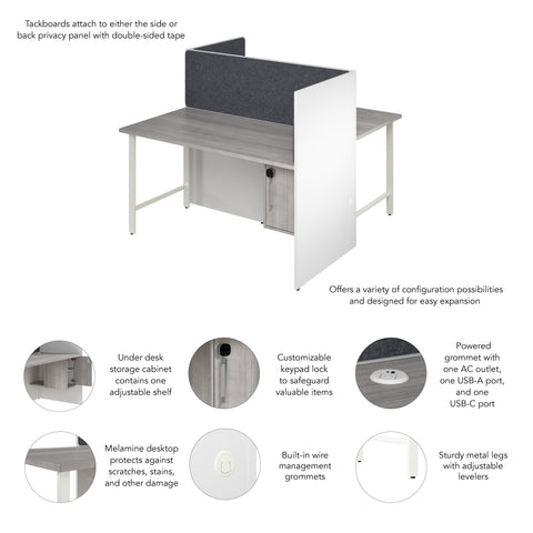 Bush Business Furniture HUS023WHPG Hustle 60-inch 2 Person Office Cubicles with Locking Storage and Large Tackboards in White and Platinum Gray