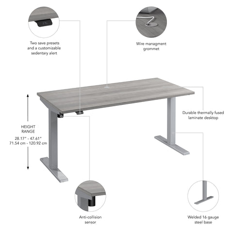 Bush Business Furniture M4S6030PGSK Move 40 Series 60W x 30D Electric Height Adjustable Standing Desk in Platinum Gray with Metallic Gray Base