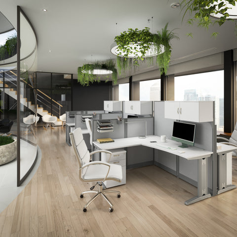 Bush Business Furniture's Office in an Hour Collection is an ideal solution for converting empty space into a practical and productive work environment. Designed with convenience in mind, this L Shaped Cubicle Desk with Storage is simple to order and install so you can get your workplace up and running instantly.