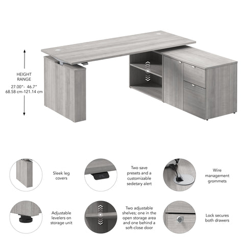 Bush Business Furniture SUT020PG Stratus 72W x30D Electric Height Adjustable Standing Desk with Storage in Platinum Gray with Metallic Gray Base