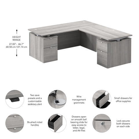 Bush Business Furniture SUT018PG Stratus 72W x78D Height Adjustable L Shaped Standing Desk with Drawers in Platinum Gray with Metallic Gray Base