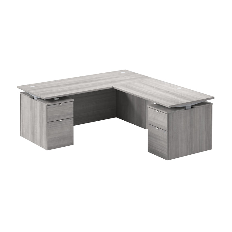 The Bush Business Furniture Stratus 72W x 30D Electric Height Adjustable Standing Desk with Drawers offers a smart blend of ergonomic performance and professional style, designed to enhance any modern office environment. The L-shaped design provides a spacious surface ideal for multitasking. The desk adjusts quickly from 27 to 46.7 inches to encourage movement and sustained focus. An intuitive control panel, programmable height presets, and a customizable sedentary alert help maintain healthy habits and boost productivity. Durable surface resists scratches and stains, while a welded steel base provides reliable supportt for up to 200 pounds of equipment. Two file cabinets conceal the desk legs and offer convenient storage with one small drawer and one file drawer each—perfect for keeping supplies and documents secure thanks to a single lock. Smooth ball-bearing slides ensure easy access, and tack glides help protect flooring. Modesty panels and built-in wire management maintain a professional office aesthetic. A responsive anti-collision sensor stops movement instantly if an object is detected, and a quiet UL-listed motor ensures smooth adjustments. Tested to meet or exceed ANSI/BIFMA quality standards for safety and performance, and backed by a Limited Lifetime Warranty, this adjustable desk provides a premium ergonomic solution at a fraction of the cost of custom-built furniture—ideal for offices seeking to invest in both style and long-term functionality.