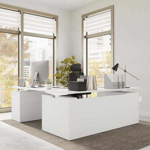 Bush Business Furniture SUT018WH Stratus 72W x78D Height Adjustable L Shaped Standing Desk with Drawers in White with White Base