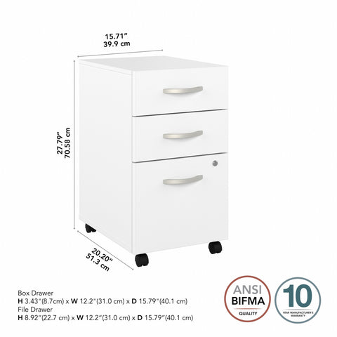 Bush Business Furniture SCF216WHSU Studio C 3 Drawer Mobile File Cabinet in White