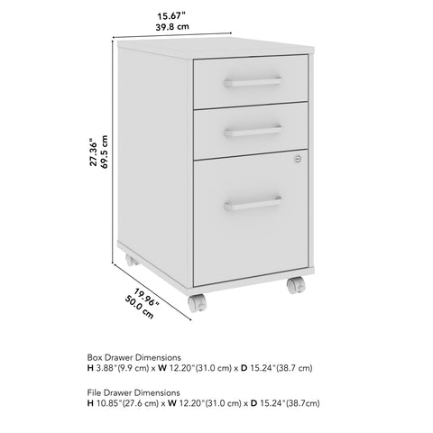 The Bush Business Furniture Vista 3 Drawer Mobile File Cabinet keeps any office or workspace organized and clutter-free, adding a modern touch and extra storage where it's needed. It features one file drawer for legal, letter, and A4-size paperwork and two box drawers for small office supplies.