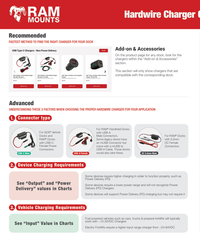 RAM-GDS-CHARGE-V21CU RAM GDS® Modular 10-30V Power Delivery (25W) Male USB-C Hardwire Charger