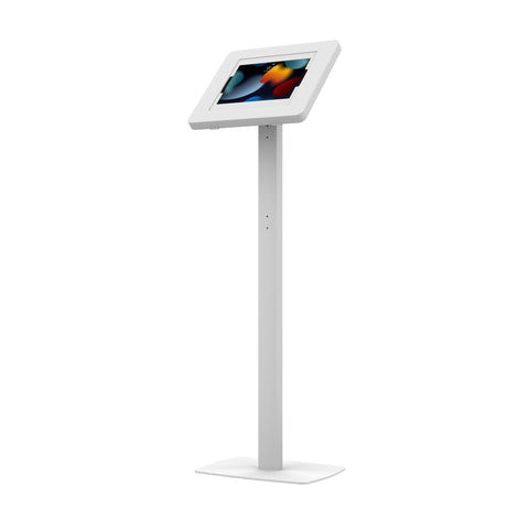 This sturdy and elegant Premium Thin Profile Floor Stand with CTA Digitals popular Large Universal Security Enclosure is the perfect addition to any retail store, restaurant or office space. The padded enclosure protects your tablet from theft with a lock and key, cushioning your tablet with included model-specific foam adapters. The enclosure is designed to allow full access to your tablet's charge ports and front camera and provides a tilt adjustable flexibility to adjust the angle to the desired preference. The enclosure also rotates a full 360 degrees for portrait and landscape displays. Standing 45 inches tall, this heavy-duty floor stand features plenty of room in the hollow interior for clean charge cable routing. The weighted, padded base keeps kiosks in place while protecting floor surfaces. Compatible with Apple iPad Pro 12.9" (2015, 2017, 2018, 2020) and Surface Pro 3, 4, 5, 6, and 7.