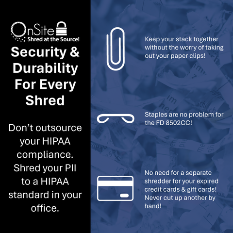 The Formax FD 8502CC Office Shredder is built to the highest standards for operator convenience, safety and reliability. The FD 8502CC Cross-Cut model can shred 23-25 sheets at a time, with a shred size of 5/32" x 1 1/5".