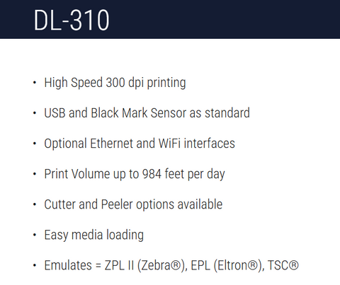 The DASCOM 289161668 DL-310 printer is designed to allow you to be more productive thanks to its speed, ease of use, and multiple connectivity options.